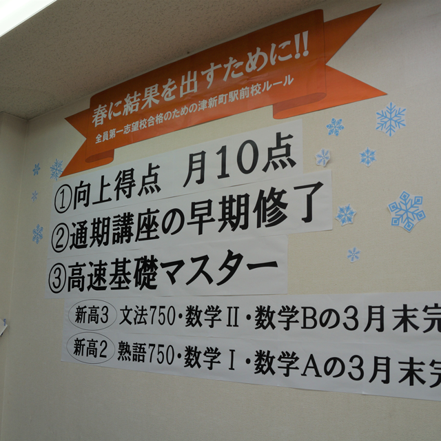 生徒のみなさんのモチベーションをアップさせられるような掲示をしています。
