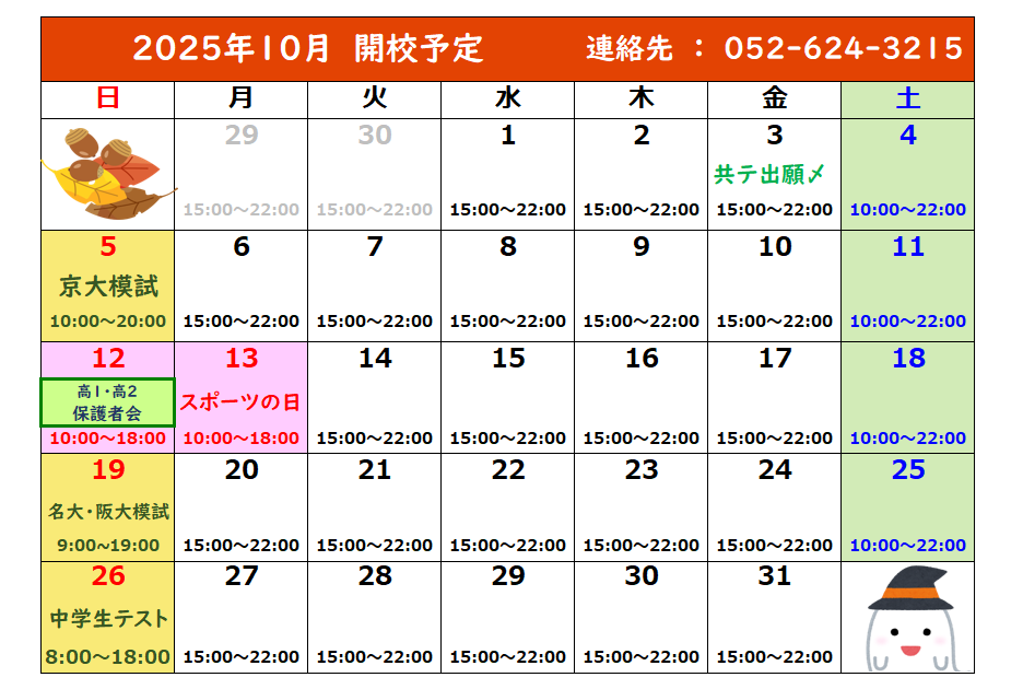 有松駅前校は名鉄有松駅徒歩1分。明るく風吹き抜ける快適学習空間です。部活との両立が大変な方も多いですが、22時まで開校しているので遅くなっても登校できますし、自宅受講も活用できます。休日は朝自習をしに来てから部活に行き、部活後に再登校して受講する方も。大学入学共通テストの出願が終わり、受験生は本番モードに突入です。高2生はいよいよ本格的に受験生になる最終準備の時期、高1生は新入生気分から脱し高校生活の主役として学校行事や部活を充実させながらも学習習慣を確立すべき時です。10月は東進の新学年カリキュラムの受付も開始します。受験勉強をどのようにスタートしたらよいのか模索しているみなさん、お気軽にご相談ください。