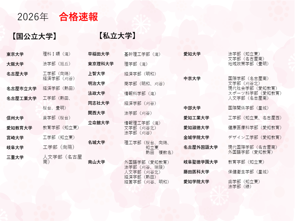 通塾エリア:豊明市・名古屋市・刈谷市・大府市他