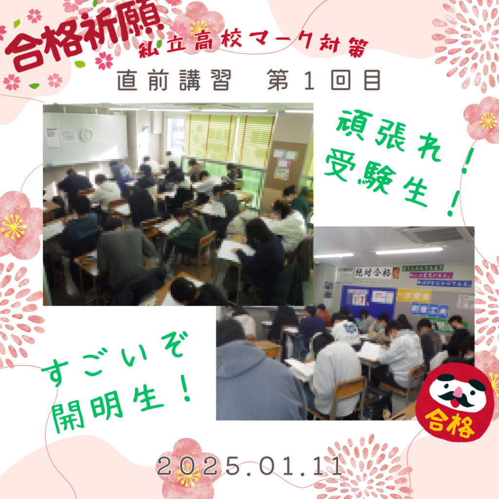 全7回の直前講習のスタートとなりましたが、まだまだ直前講習は始まったばかりです。全員が目標とする学校に合格できるよう、これからも精一杯サポートしてまいります。