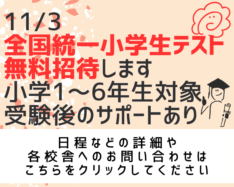 | 9/27 | 11/3に全国統一小学生テスト実施します!詳しくはこちらnew |