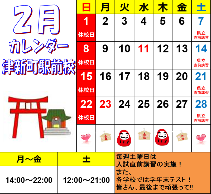 いよいよ2月となり、学年末テストが近づいてきましたね。このテストは、今の学年の学習内容の総まとめであると同時に、来たる新学年への大切な準備期間でもあります。ここでしっかりと土台を固めることで、自信を持って次のステップに進むことができます。とぴあでは、生徒一人ひとりの状況に合わせたテスト対策を実施していきます。有終の美を飾れるように一緒に頑張ろう!