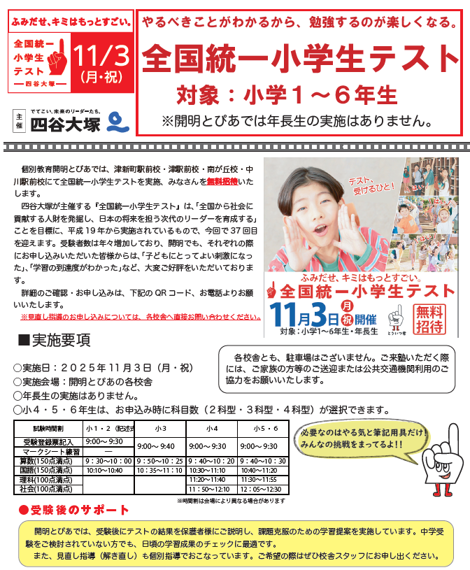 校舎によって実施日が異なります。
