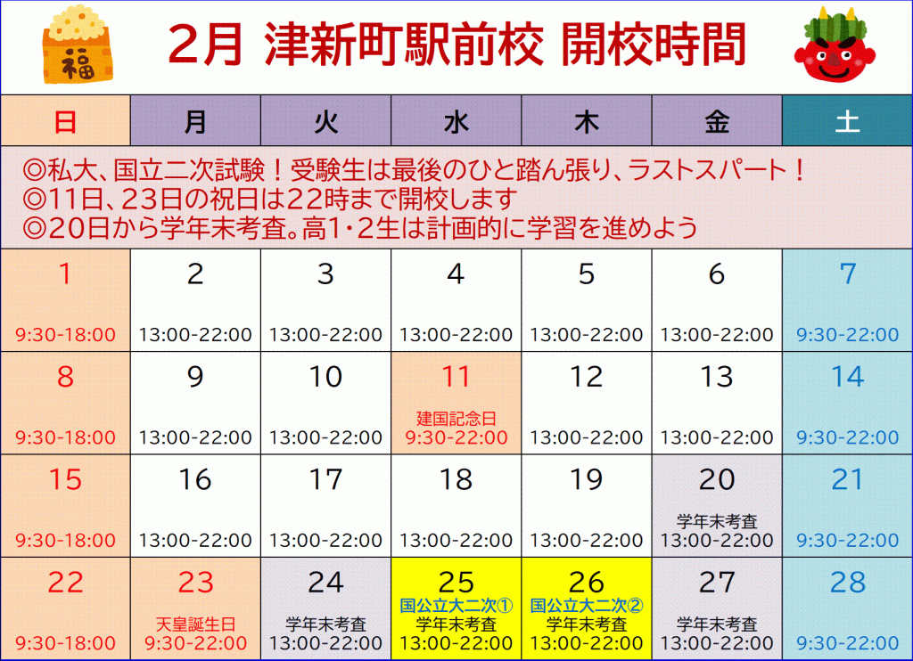 私大受験も佳境を過ぎ、よいよ国公立大学の二次試験が迫ってきました。受験生の皆さんはここまで頑張ってきたことの集大成、落ち着いて戦い抜いてほしいと思います!