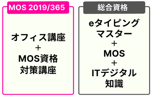 MOS・イータイピング検定が取得できます。資格取得のためだけでなく、実務面もカバーいたしますのでただ資格を取るだけではなくお仕事や普段の場面でも役立ちます。MOSの合格率は、2022年度が99.5%(2016・2019合計)、2023年度が97.3%、2024年度が97.3%と高い合格率となっております。パソコンを初めて触る方でも資格取得を目指すことが可能です!かかる費用や目安の期間は各校舎へお問い合わせください。また試験認定校もございますので慣れた環境で試験を受けることが可能です。【MOS認定校】久居校・伊勢みそのショッピングセンター校・マックスバリュ生桑校・イオンタウン弥富校・マックスバリュ篠原橋東校・なるぱーく校。【イータイピングマスター認定校】全校舎。詳しくは校舎紹介よりご確認ください。