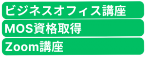 お仕事や普段の使い方をさらに充実させたい方へおすすめのコースです。また、少しパソコンを触ったことがあるけどワードやエクセル・パワーポイントの使い方で困っている方へもおすすめです。他にもお仕事で効率よく使えるようになるビジネス講座、パソコンをもっと便利に使う方法やインターネット・メール、Zoom、MOS取得などなど…様々ご用意しておりますのでぴったりのコースをご提案します。